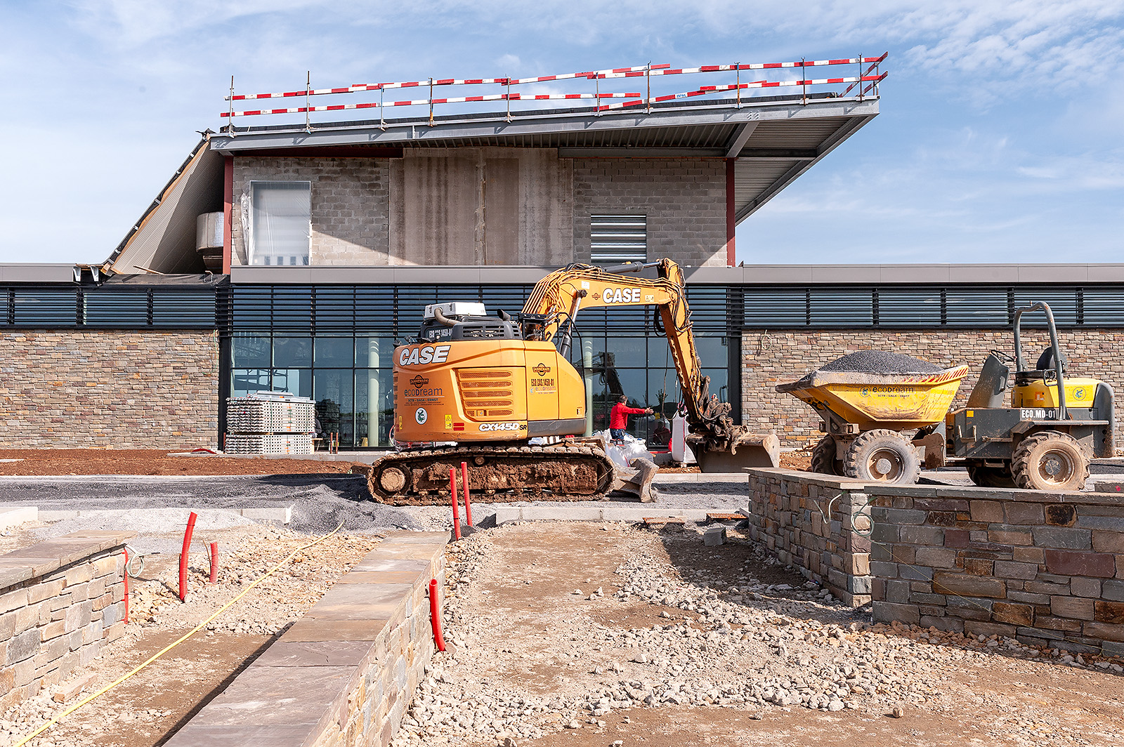 Au sous-sol, le granito noir, ponctué de touches colorées et de joints en laiton, reflète un choix audacieux et sophistiqué du maître d’ouvrage et de l’architecte, apportant une esthétique raffinée à cet espace technique. Situé à proximité du site de l’Agence spatiale européenne à Redu, ce centre aspire à devenir un véritable pôle d’excellence, incarnant une « Cyber Valley » au cœur de l’Europe. Ce projet, mêlant innovation et élégance, illustre le rôle de la Belgique et de l’Europe comme leaders mondiaux en cybersécurité tout en offrant un environnement de travail inspirant pour les experts du secteur.